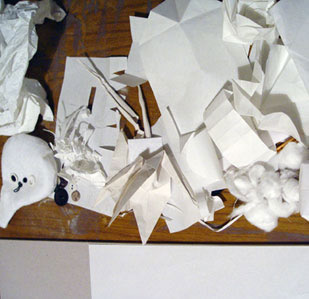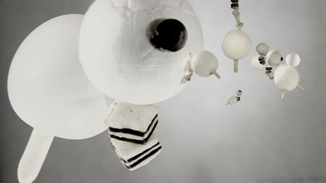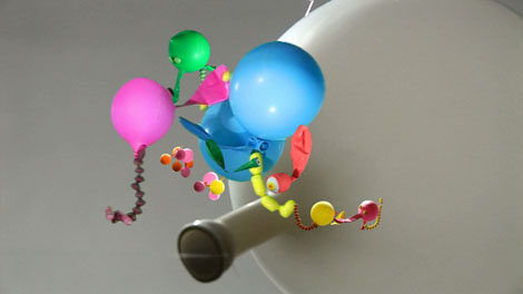 like ballons, felt, sweets, buttons and paper-maché I created objects and creatures.