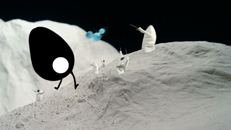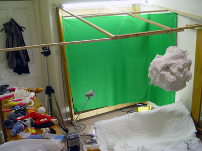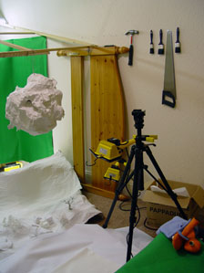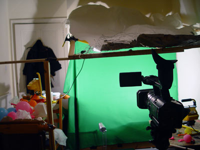 filmed them on greenscreen and composed them afterwards digitally with After Effects.